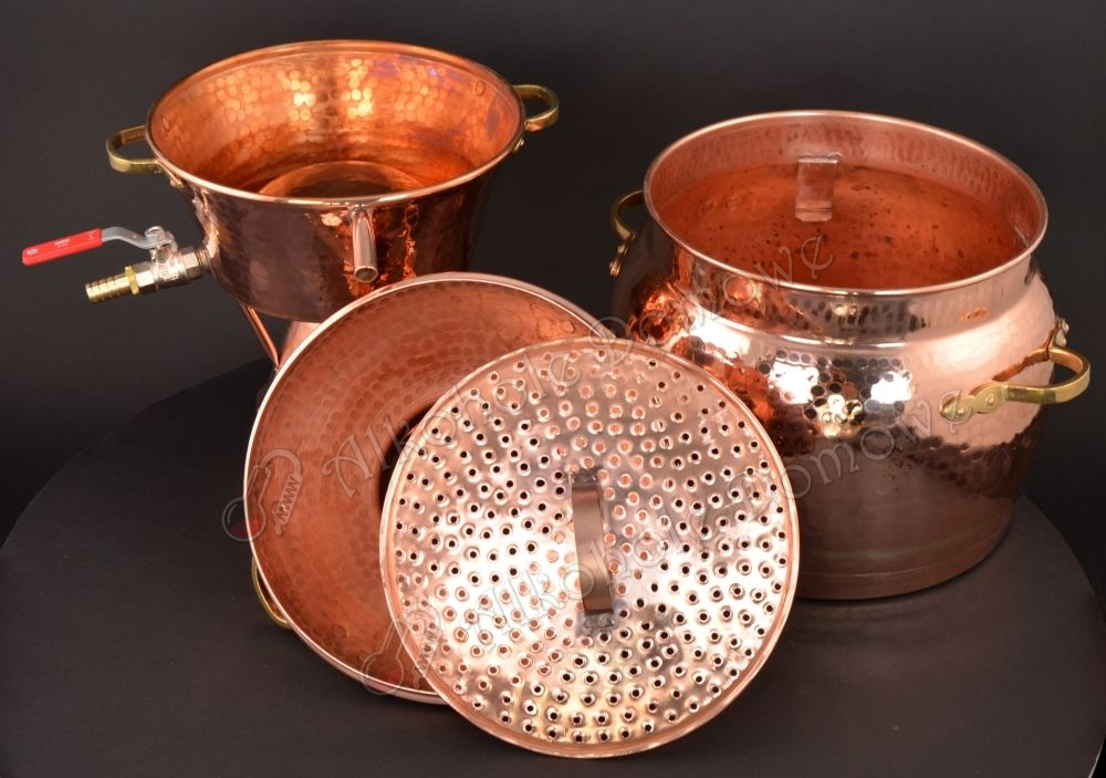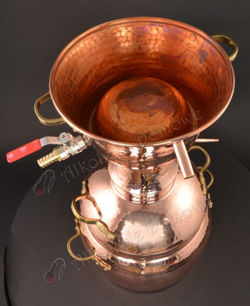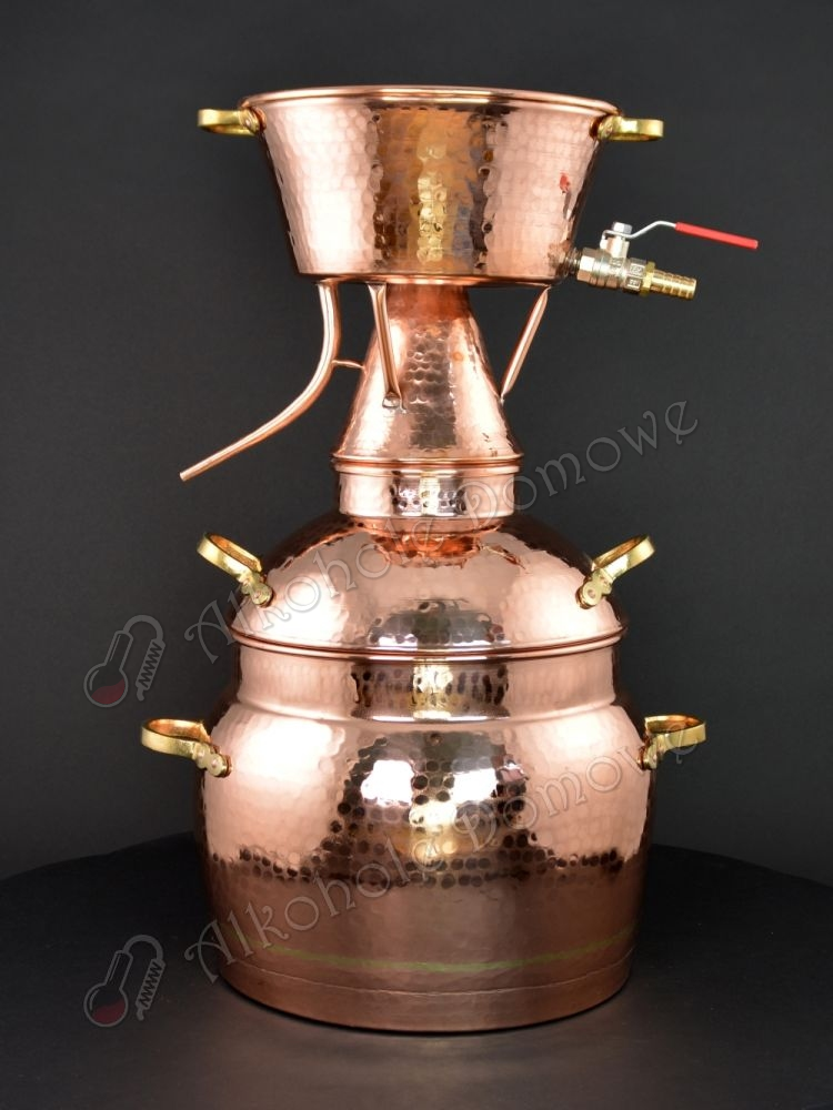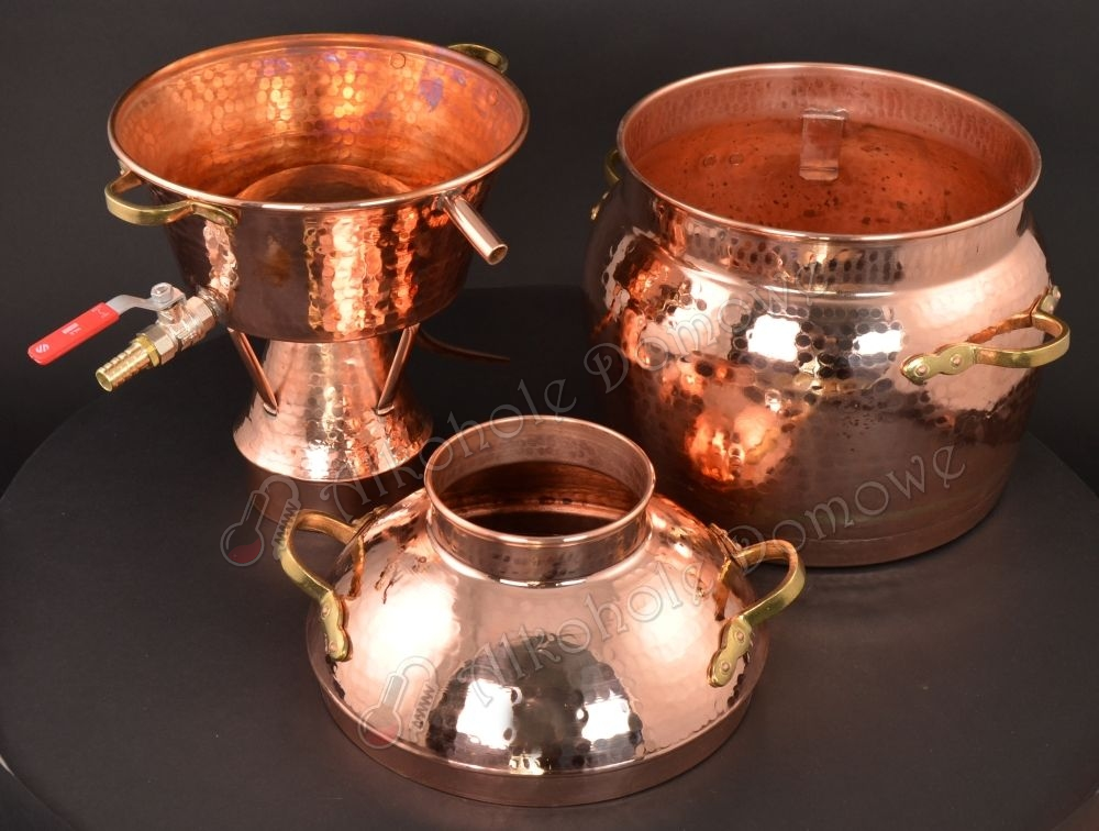 Dziękujemy za zakup naszych produktów – jesteśmy pewni, że zakupiony alembik spełni Państwa oczekiwania. Wieloletnie doświadczenie i wiedza naszych rzemieślników oraz zastosowanie najlepszych materiałów pozwalają nam zaproponować produkty o najwyższej, jakości i doskonałym wyglądzie.Wszystkie nasze destylatory wytwarzane są z miedzi, ponieważ jest ona najlepszym materiałem do produkcji destylatorów, szczególnie pod względem swojej kowalności oraz doskonałej przewodności cieplnej, która ułatwia przewodzenie ciepła w kotle oraz chłodzenie w wężownicy. Dodatkowo, użycie miedzi wspomaga absorpcję siarki, jej związków oraz drożdży powstających w procesie fermentacji, których obecność w destylowanych produktach jest niepożądana i powoduje powstawanie nieprzyjemnych zapachów.
