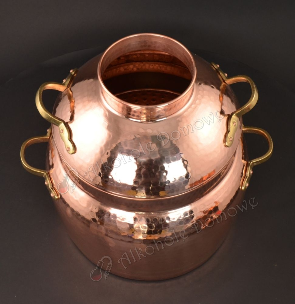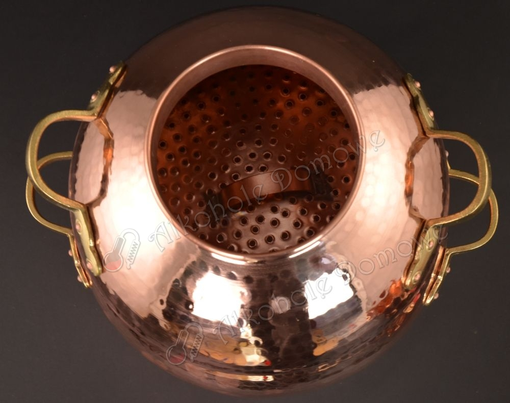 Słowa kluczowe: alembik miedziany, alembik 15l, alembik z sitem, destylator miedziany, destylator wykonany z miedzi, alembik z miedzi, alembik z miską, alembik kopułowy, alembik do destylacji owoców, alembik do zacieru, alembic copper still