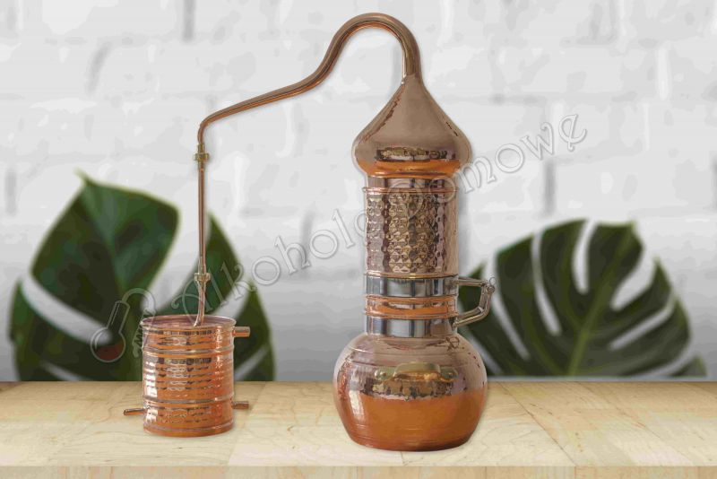 Dziękujemy za zakup naszych produktów – jesteśmy pewni, że zakupiony alembik spełni Państwa oczekiwania. Wieloletnie doświadczenie i wiedza naszych rzemieślników oraz zastosowanie najlepszych materiałów pozwalają nam zaproponować produkty o najwyższej, jakości i doskonałym wyglądzie.Wszystkie nasze destylatory wytwarzane są z miedzi, ponieważ jest ona najlepszym materiałem do produkcji destylatorów, szczególnie pod względem swojej kowalności oraz doskonałej przewodności cieplnej, która ułatwia przewodzenie ciepła w kotle oraz chłodzenie w wężownicy. Dodatkowo, użycie miedzi wspomaga absorpcję siarki, jej związków oraz drożdży powstających w procesie fermentacji, których obecność w destylowanych produktach jest niepożądana i powoduje powstawanie nieprzyjemnych zapachów.