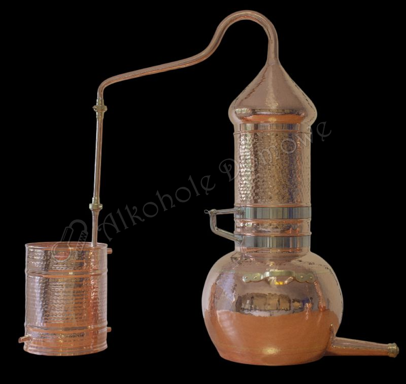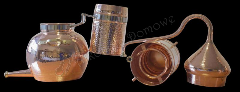 Dziękujemy za zakup naszych produktów – jesteśmy pewni, że zakupiony alembik spełni Państwa oczekiwania. Wieloletnie doświadczenie i wiedza naszych rzemieślników oraz zastosowanie najlepszych materiałów pozwalają nam zaproponować produkty o najwyższej, jakości i doskonałym wyglądzie.Wszystkie nasze destylatory wytwarzane są z miedzi, ponieważ jest ona najlepszym materiałem do produkcji destylatorów, szczególnie pod względem swojej kowalności oraz doskonałej przewodności cieplnej, która ułatwia przewodzenie ciepła w kotle oraz chłodzenie w wężownicy. Dodatkowo, użycie miedzi wspomaga absorpcję siarki, jej związków oraz drożdży powstających w procesie fermentacji, których obecność w destylowanych produktach jest niepożądana i powoduje powstawanie nieprzyjemnych zapachów.