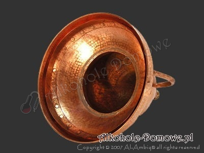 Alembik miedziany lutowany i nitowany trzyczęściowy z systemem uszczelnienia wodą.